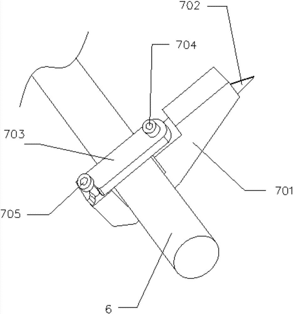这种结构设计,可以便于拆换新的刀片702,采用该种结构的刀架7主体701可以装配上不同型号的刀片702,拓展了刀架7的功能。也给及其的调整带来极大便利。